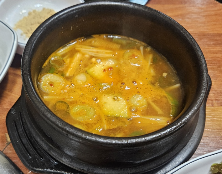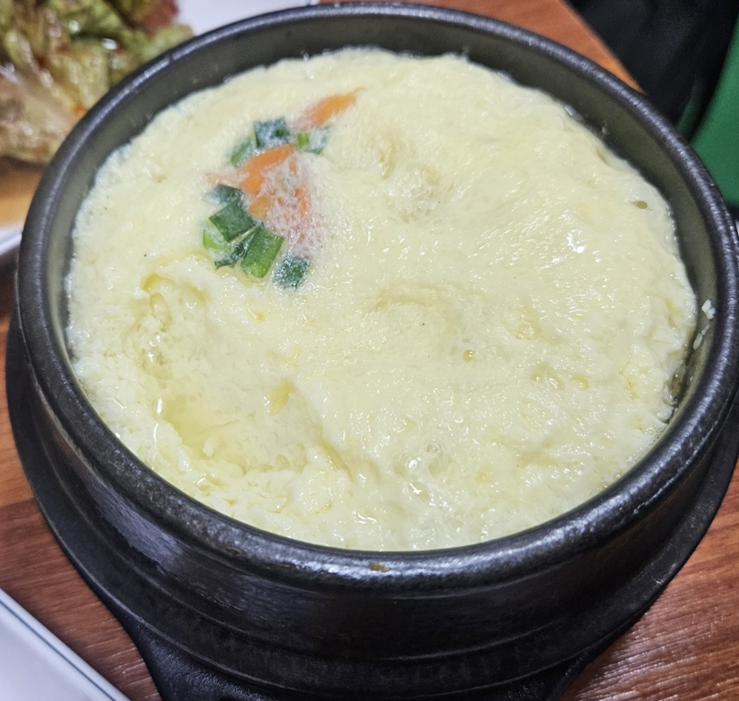 기본메뉴는 돼지껍데기와 된장찌개 그리고 계란찜이 나옵니다.
