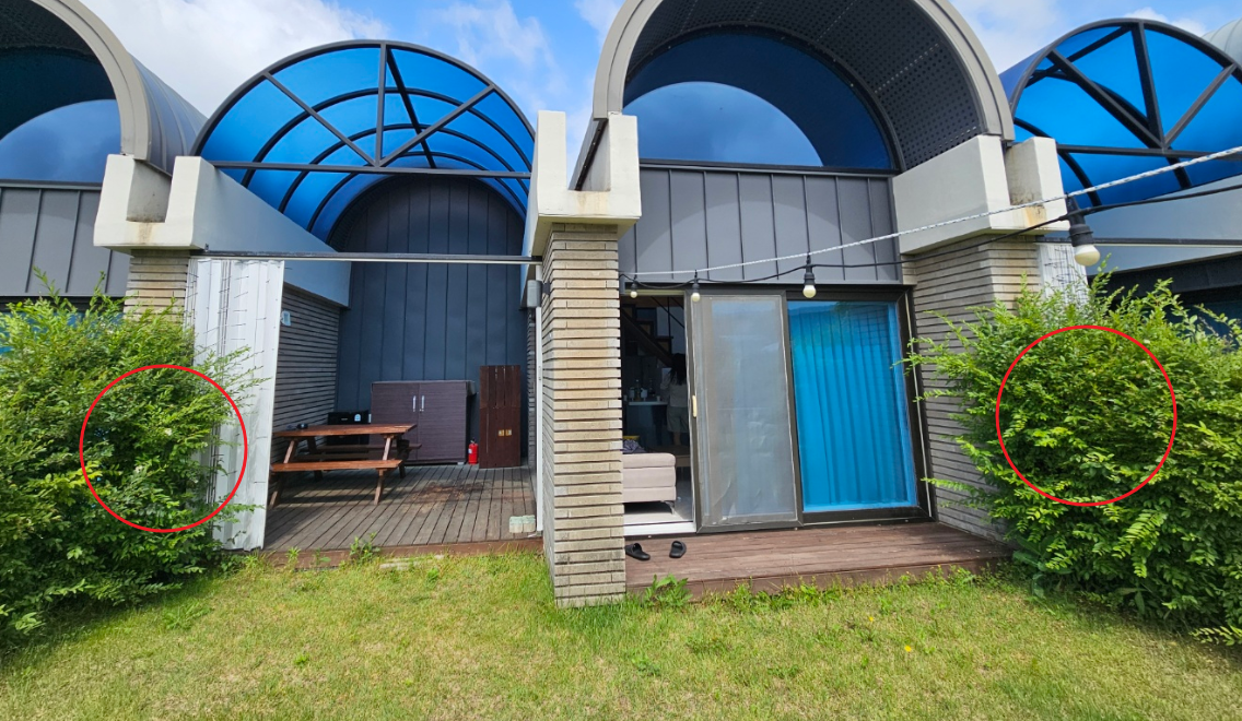 무슨 말이냐면 밑의 빨간 동그라미의 조경으로 옆방과 구분이 되지만 이동이 자유로운 공간이다.